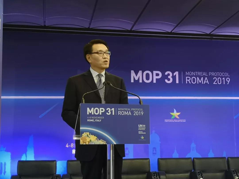 《关于消耗臭氧层物质的蒙特利尔议定书》(以下简称蒙特利尔议定书)第31次缔约方大会于2019年11月4日至8日在意大利罗马召开,来自169个国家以及相关国际组织700余名代表与会。生态环境部副部长赵英民率由生态环境部和外交部组成的中国政府代表团出席会议。会议就四氯化碳排放、蒙特利尔议定书多边基金增资研究工作大纲、三氯一氟甲烷(cfc-11)排放意外增长等议题进行讨论并形成相关决议。